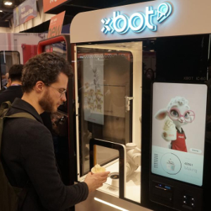 2026年1月7日,人们在2026年美国拉斯维加斯消费电子展(CES)体验影智XBOT冰淇淋机器人。新华社发(曾慧摄)