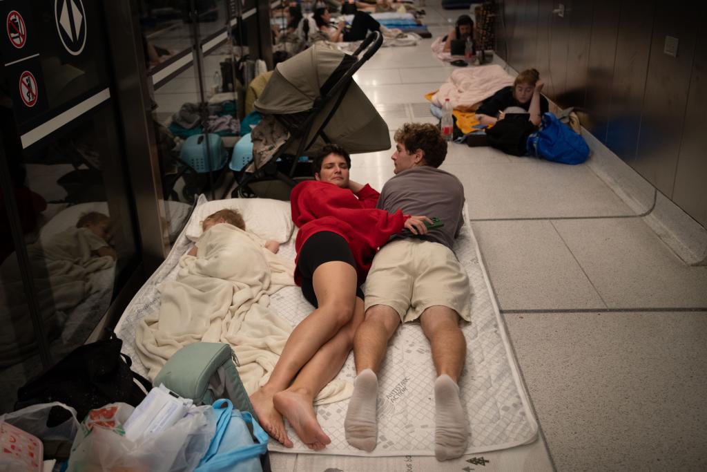 2025年6月20日,人们在以色列特拉维夫一处较深的地铁站过夜。