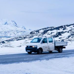 1月16日,一辆汽车行驶在丹麦自治领地格陵兰岛首府努克市郊。新华社发(安德斯·孔斯豪格摄)