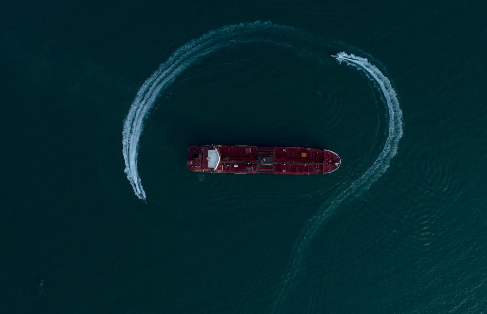 这张资料照片显示的是2019年7月21日在伊朗霍尔木兹海峡附近,伊朗伊斯兰革命卫队的船只在“史丹纳帝国”号油轮周围巡逻。新华社/伊朗学生通讯社