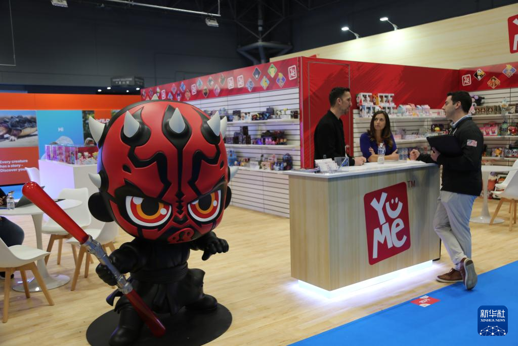 这是2月17日在美国纽约举行的2026年北美国际玩具展上拍摄的优米玩具公司展台。 新华社记者 刘亚南 摄