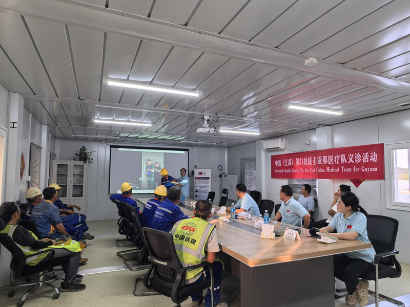 新华网加拉加斯4月22日电(记者田睿)乔治敦消息:近日,第21批援圭亚那中国医疗队林登驻地队员走进中国铁建(加勒比)有限公司圭亚那新麦肯锡维斯马桥项目部驻地,开展健康义诊与急救技能培训。